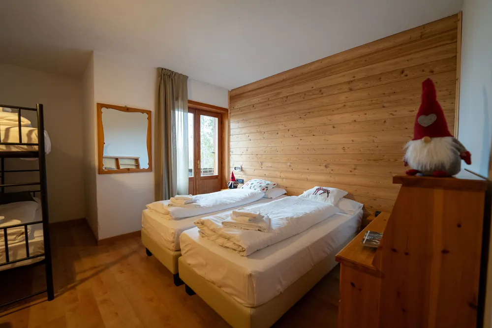 Le camere dell’Hotel Lares (da 2 a 5 posti letti) sono semplici ed essenziali con parquet a terra, dotate di servizi privati interni con doccia.